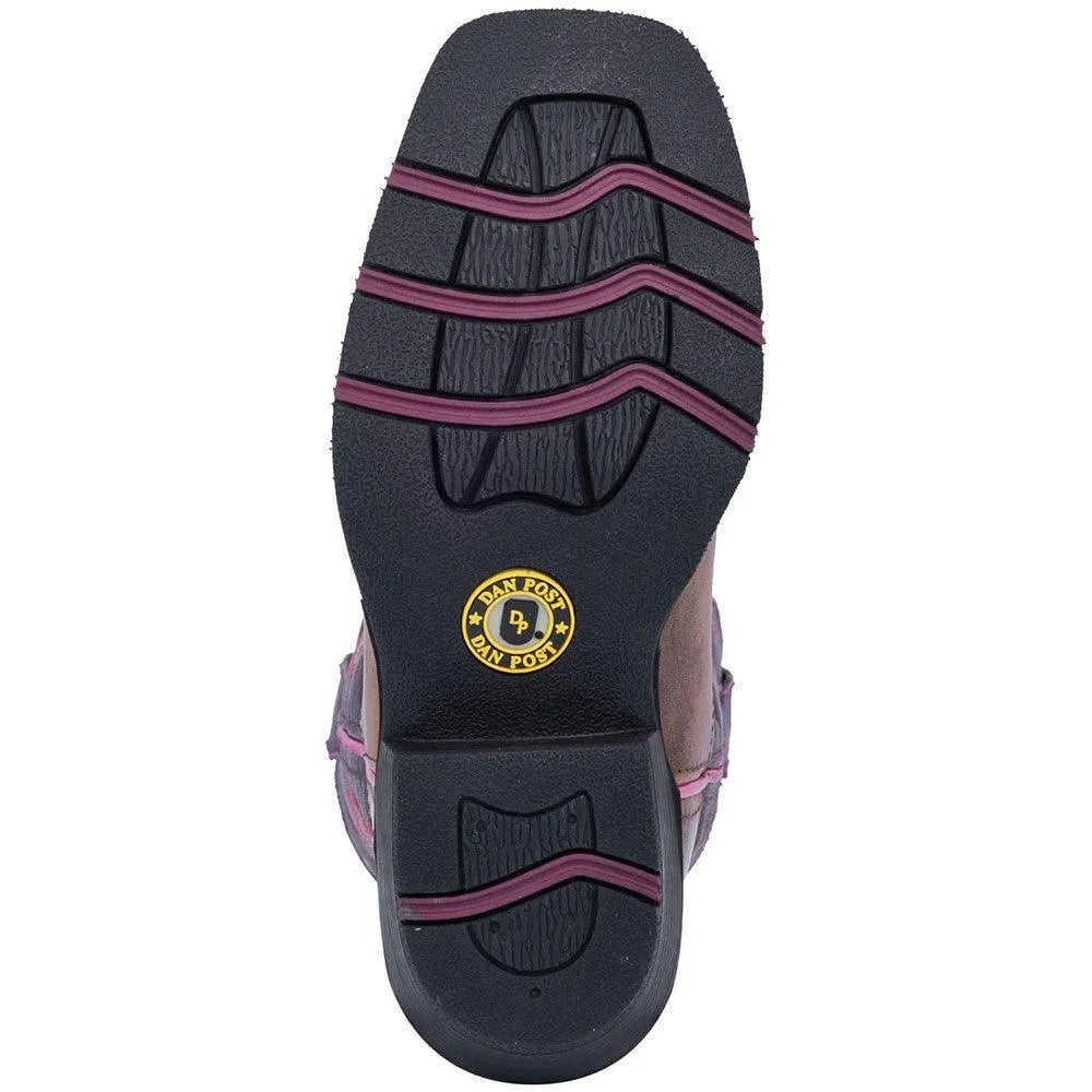 Your little cowgirl can let her colors shine through the Dan Post Majesty children's cowgirl boots. These boots have a fun purple shaft that’s accented with elaborately detailed pink stitching and piping, while the foot is made of classic genuine brown leather made to last. With a comfort cushion insole inside and a rubber outsole underneath, the Majesty boots don’t only look good, but they’ll withstand all of life’s greatest adventures.