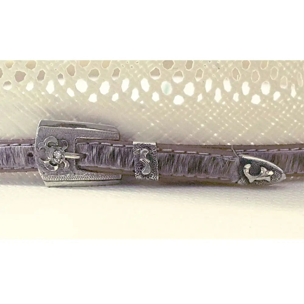 - Brown Leather Hat Band with Hair on Hide and Studded Accents with Three-Piece Buckle Set