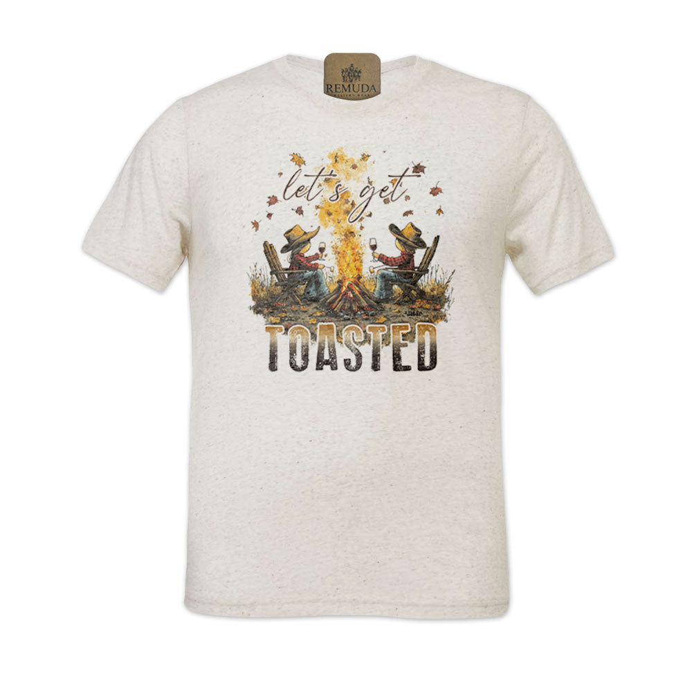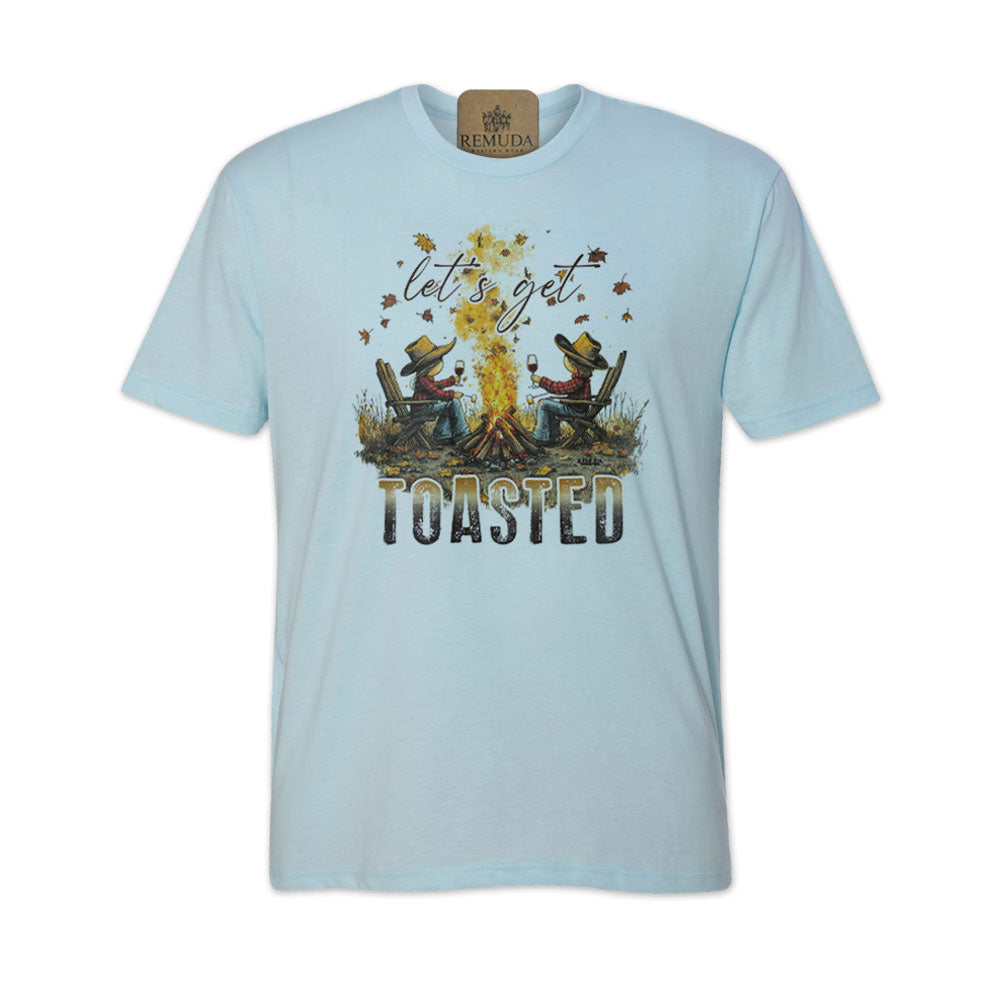 Kick back, relax, and raise a glass (or two) in this soft "Let's Get Toasted" t-shirt! Perfect for the campfire, backyard BBQ, or just lounging with friends. Featuring a fun design, this tee captures the spirit of unwinding in true western style. Made for both the guys and the gals, it’s soft, and just begging to be your go-to under a warm flannel when the sun sets and the toasting begins. So grab your favorite drink, throw on this tee, and let's get toasted—cowboy style!