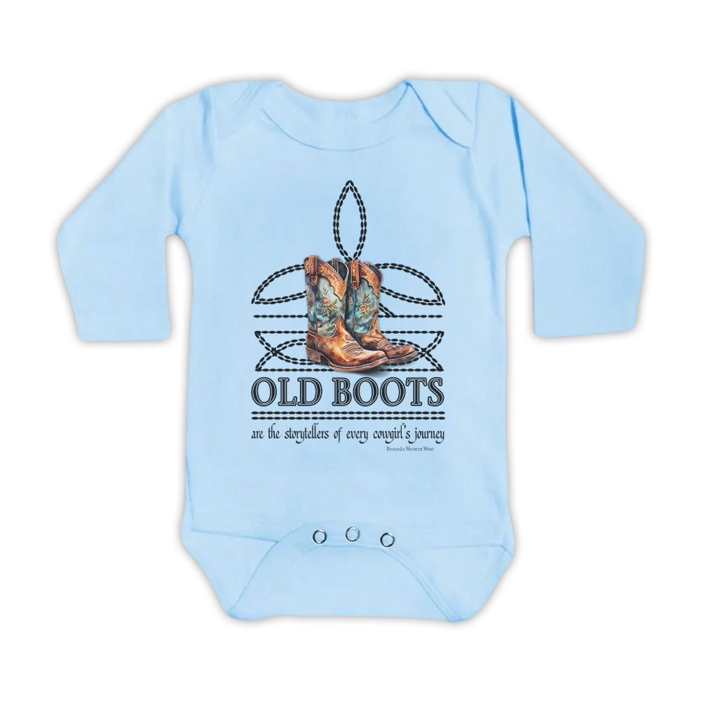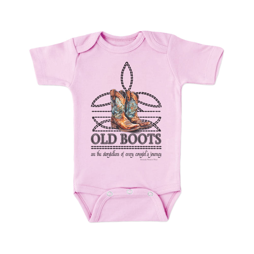 Embrace the frontier spirit and let your little one make a statement with our "Old Boots" Infant Cowgirl Onesie Romper. It's the perfect attire for tiny adventurers ready to explore the wide-open spaces of imagination.