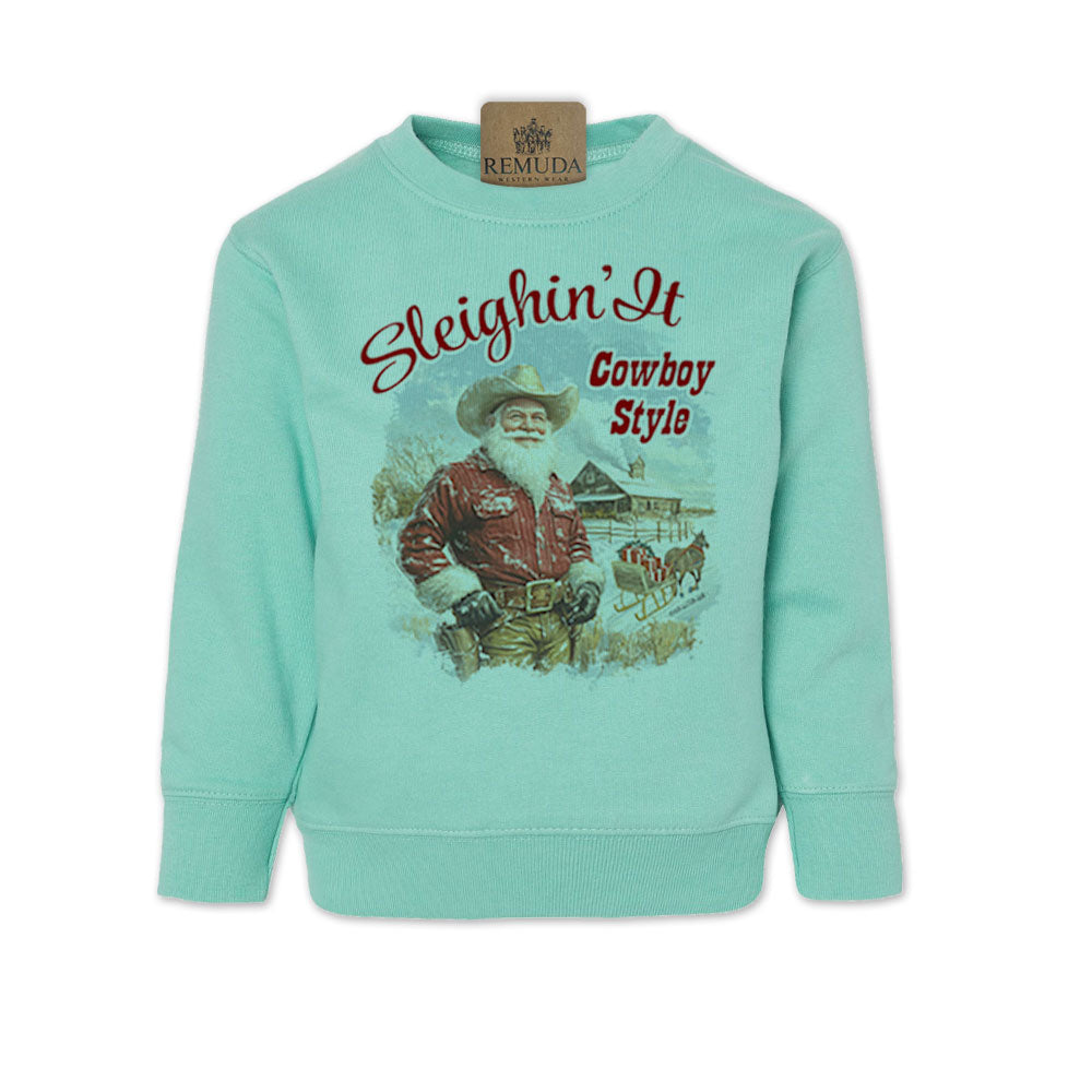 Sleighin It Cowboy Style - Toddler Western Santa Sweatshirt
